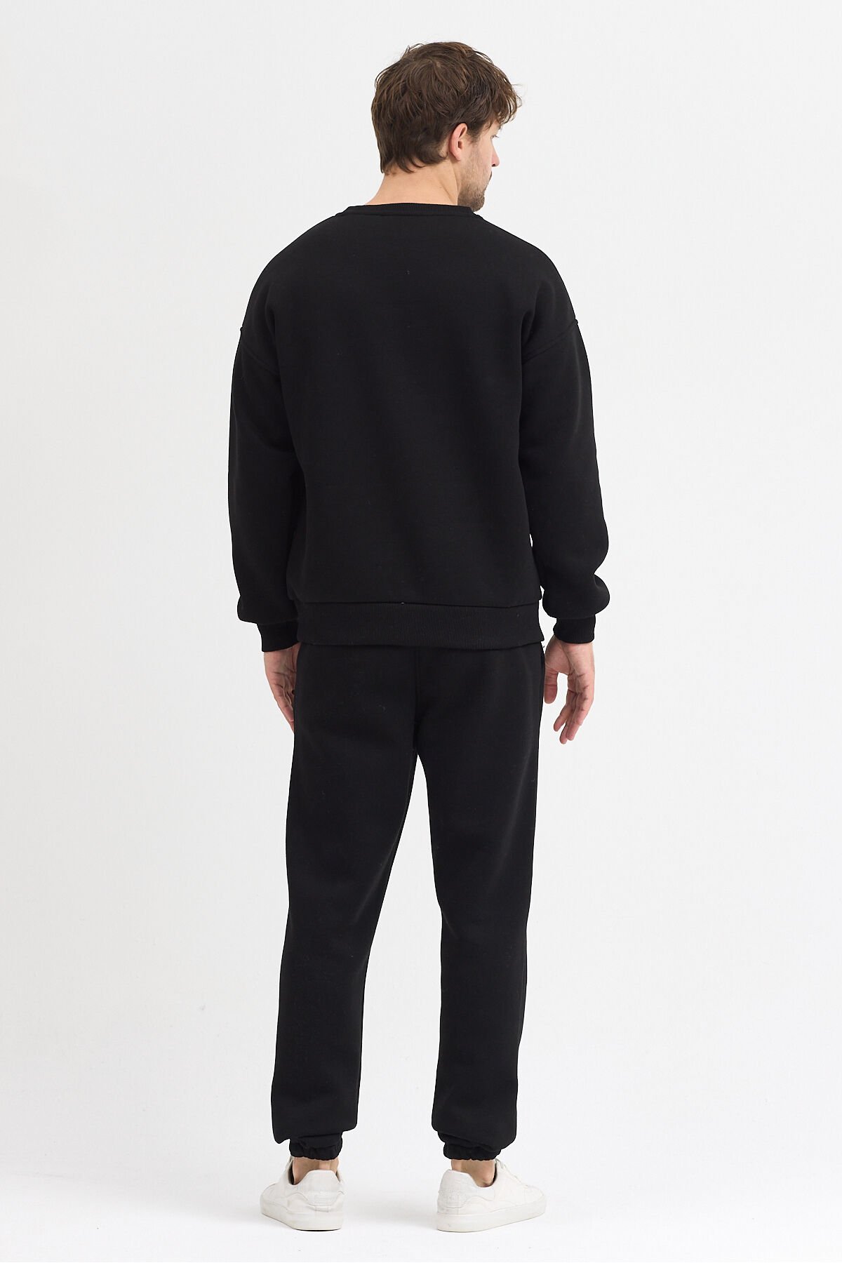 - Rahat ve modern bir tarz sunan oversize kesim, günlük kullanım için idealdir.; - Yüksek kaliteli %100 pamuk materyali sayesinde yumuşak bir dokunuş ve konforlu bir deneyim sağlar.; - 3 iplik şardonlu dokuma tipi ile dayanıklılık ve uzun ömürlü kullanım vaat eder.; - Beli lastikli silueti sayesinde mükemmel uyum ve rahat hareket kabiliyeti sunar.; - Tekli paket içeriğiyle pratik bir alışveriş deneyimi yaşatır.; - Standart boy uzunluğu, farklı vücut tiplerine uyum sağlayarak geniş bir kullanıcı kitlesine hitap eder.; - Bisiklet yaka tasarımı ile sade ve şık bir görünüm kazandırırken, uzun kol tipi soğuk havalarda ekstra koruma sunar.; - Yan cepler pratik kullanım imkanı tanır; anahtarlarınız veya cüzdanınız için ideal saklama alanlarıdır.; - Casual/günlük koleksiyonun parçası olarak her ortamda rahatlıkla tercih edilebilir.; - TR menşei olan bu ürün, yerli üretimle desteklenmiş kaliteyi temsil eder.; - Model Boy: 1.87 Göğüs: 100 Bel: 79 Basen: 92 - Ürün Beden: M