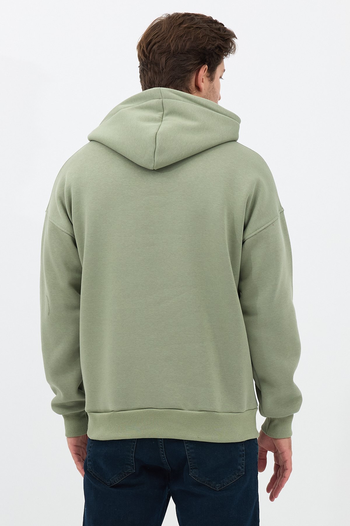 Erkek Oversize Pamuklu Kanguru Cepli 3 İplik Basic Kapüşonlu Sweatshirt Buz Yeşil - M