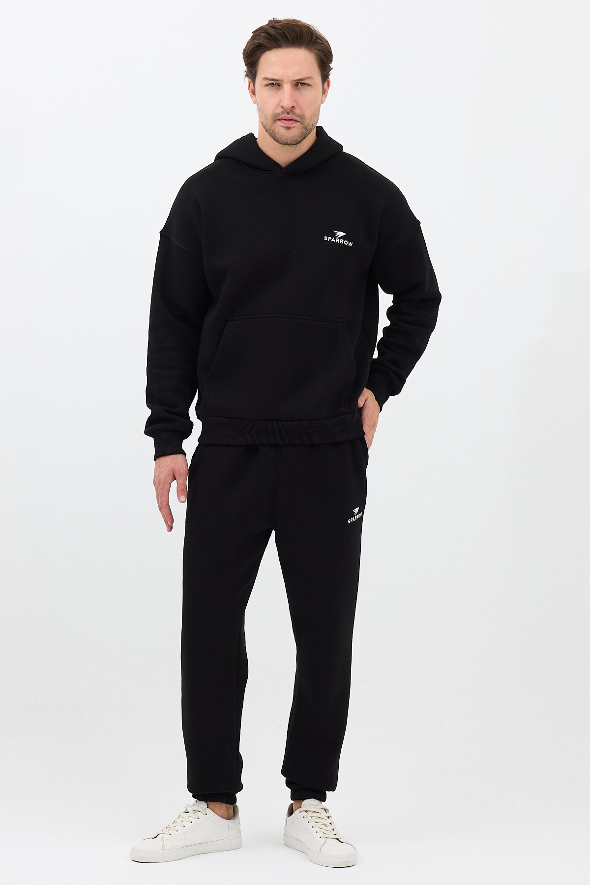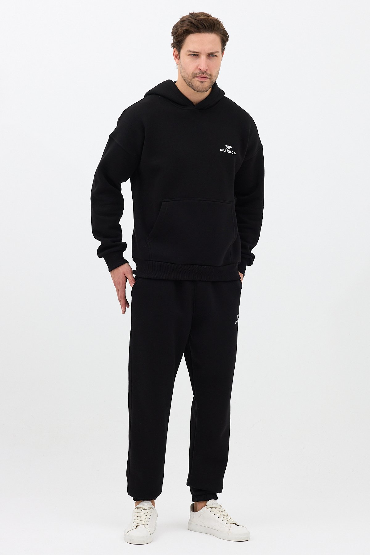 - Rahat ve şık bir görünüm için tasarlanmış, uzun kollu kapüşonlu eşofman takımı.; - Soğuk havalarda bile konforlu bir kullanım sunan soğuk havaya dayanıklı kumaş yapısı.; - Beli lastikli tasarımı sayesinde mükemmel oturuş ve rahat hareket kabiliyeti sağlar.; - Günlük spor aktivitelerinizde veya evde rahatlıkla tercih edebileceğiniz sportswear kategorisinde yer alır.; - Kolay bakım imkanı sunan yıkama talimatları ile uzun süreli kullanım için idealdir.; - Uzun kol boyu ve lastikli paça detayları ile modern ve spor bir görünüm kazandırır.; - Örme kumaş tipi sayesinde esneklik ve dayanıklılık bir arada sunulur.; - Regular kalıp ile vücudu saran ancak sıkmayan ideal oturuşa sahiptir.; - Gençlerin enerjisini yansıtan genç yaş grubuna hitap eden tasarım.; - MADE in TÜRKİYE - Manken BoyU: 1.87 Göğüs: 100 Bel: 79 Basen: 92 / BEDEN : M
