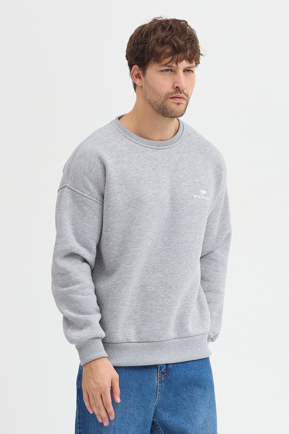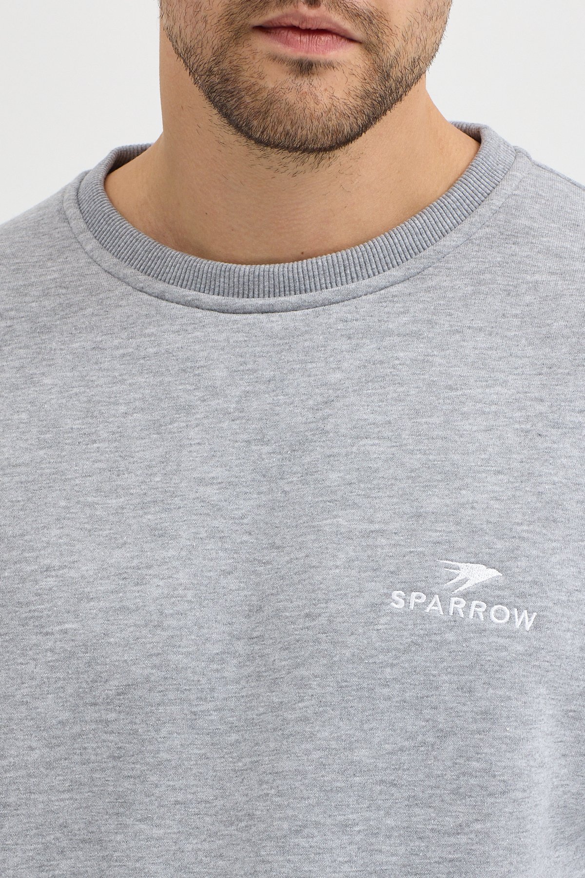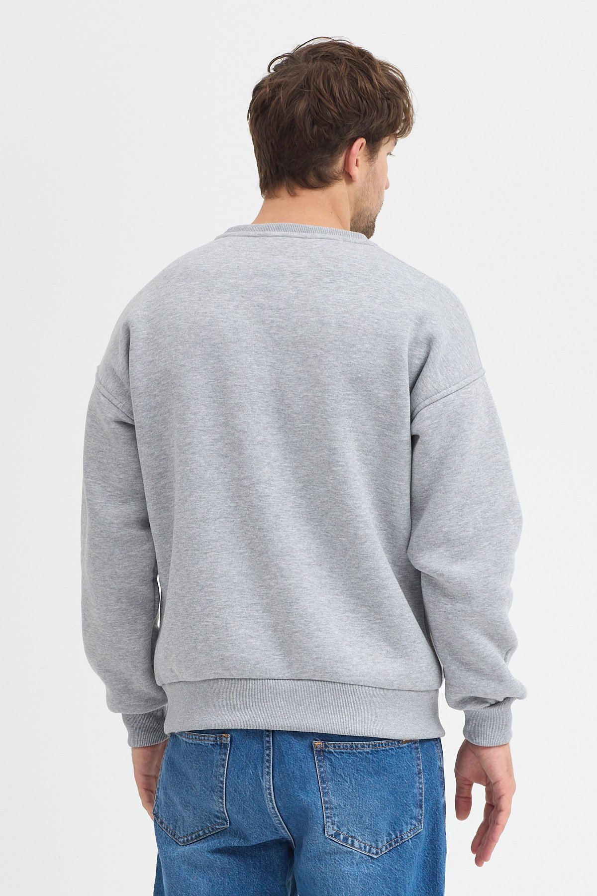 Oversize Bisiklet Yaka Şardonlu Erkek Sweatshirt 3 İplik Pamuklu Gri - M sprw-b-nsiyah_gri_m