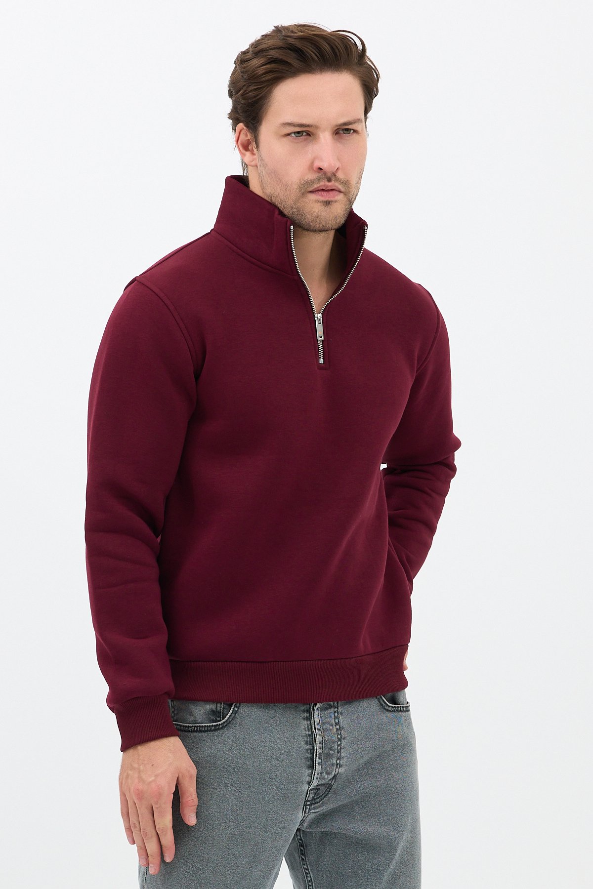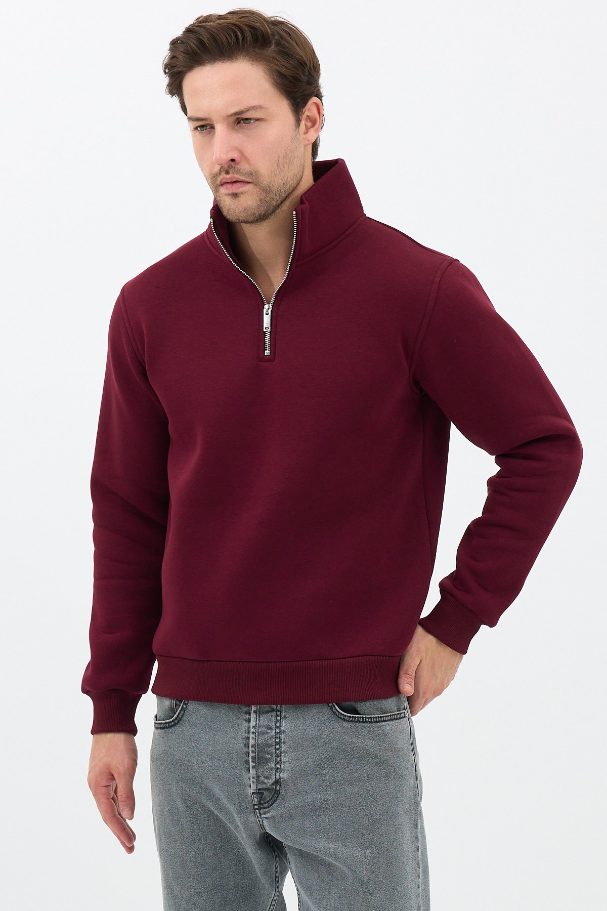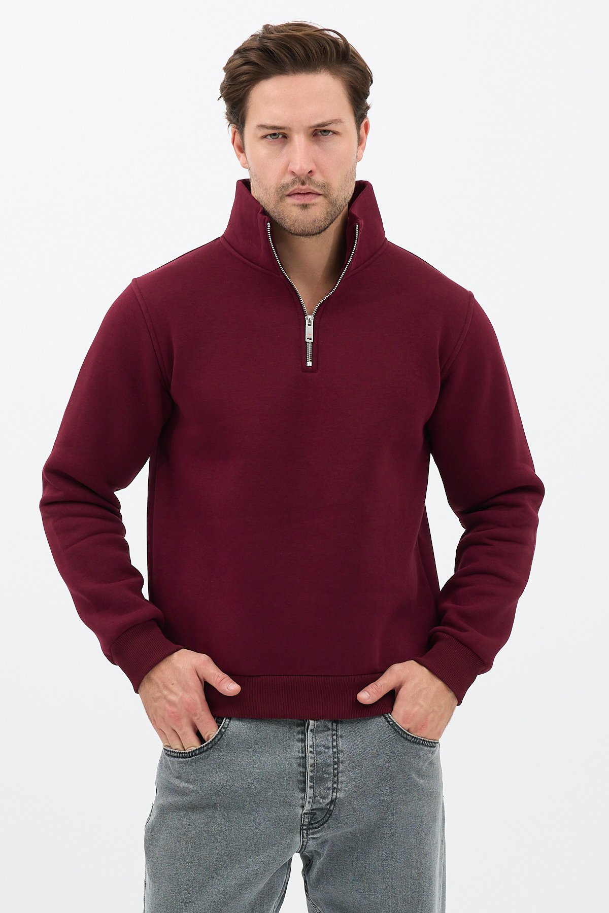 - Pamuklu kumaşı sayesinde gün boyu rahat bir kullanım sunar.; - Yarım fermuar kapama özelliği ile kolayca giyilip çıkarılabilir ve kişisel konforunuzu artırır.; - Regular fit kesimi, vücudu saran ancak sıkmayan bir yapıya sahiptir, hareket özgürlüğü sağlar.; - Dik yaka tasarımı ile modern ve şık bir görünüm kazandırır.; - Uzun kollu tasarımı, mevsim geçişlerinde ideal koruma sunar.; - Baskısız düz deseniyle sade ve zamansız bir stil oluşturur.; - 3 iplik şardonlu dokuma tipi, dayanıklılığı artırarak uzun süreli kullanım imkanı tanır.; - Tek parça paketiyle pratik alışveriş deneyimi yaşatır.; - Standart boy uzunluğu ile farklı vücut tiplerine uyum sağlar.; - Örme kumaş tipi, esneklik ve konforu bir arada sunar.; -